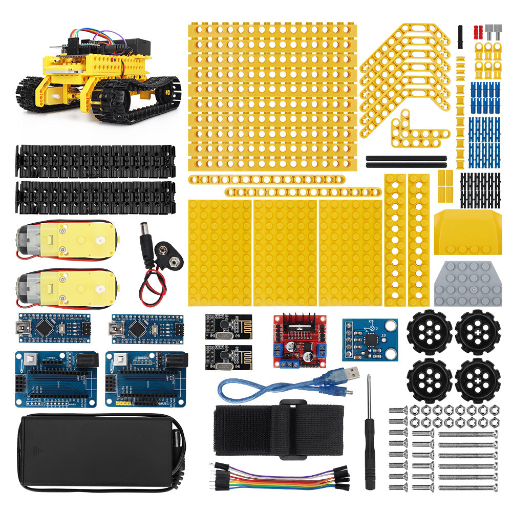 In this kit, a gesture-controlled robot is developed using ADXL335, 3-axis accelerometer and 3-axis gyroscope sensor, and CH340 nano main control board.